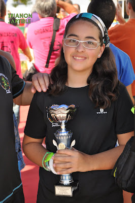 AQUI VEMOS A MARINA CON SU MERECIDO TROFEO POR HABER QUEDADO 3º DE SU CATEGORÍA: