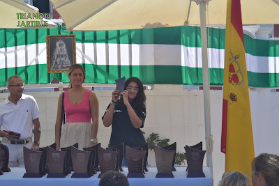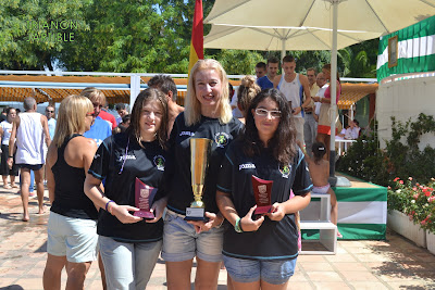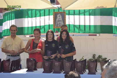 MARINA, QUEDO 3ª DE SU CATEGORÍA, INFANTIL FEMENINO, Y ROSA 2ª, AQUÍ LAS VEMOS COGIENDO SU MERECIDO TROFEO: